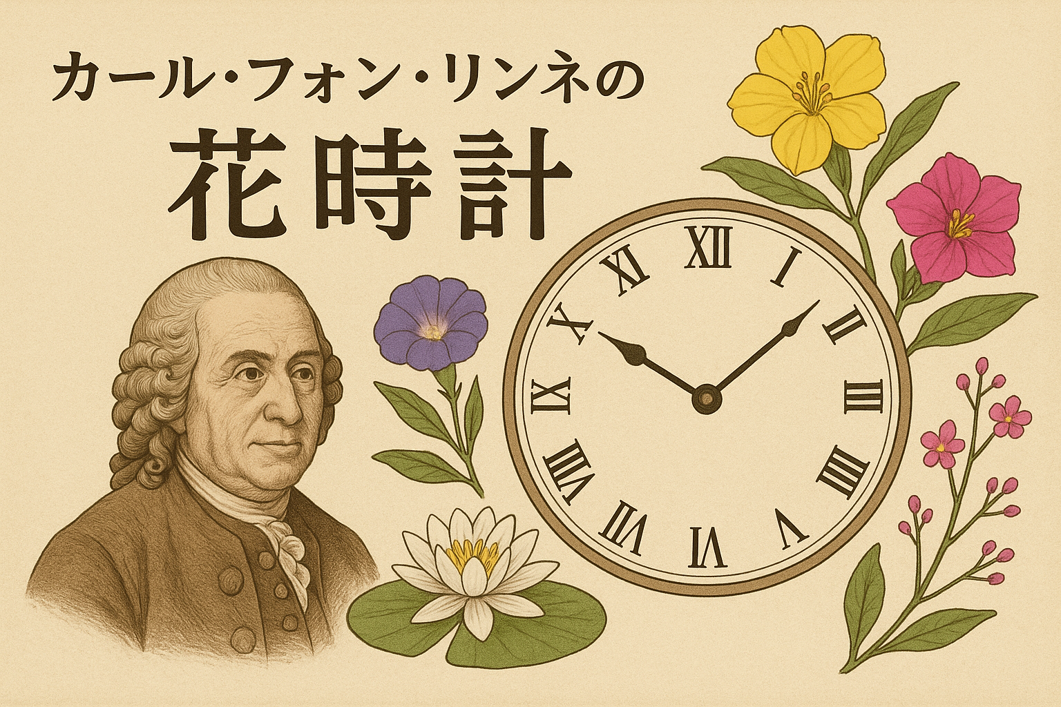 カール・フォン・リンネの花時計は、植物のもつ不思議な時間感覚に着目した歴史的にも興味深い試みです。しかし、残念ながら正確な時計としては実用化されませんでした。