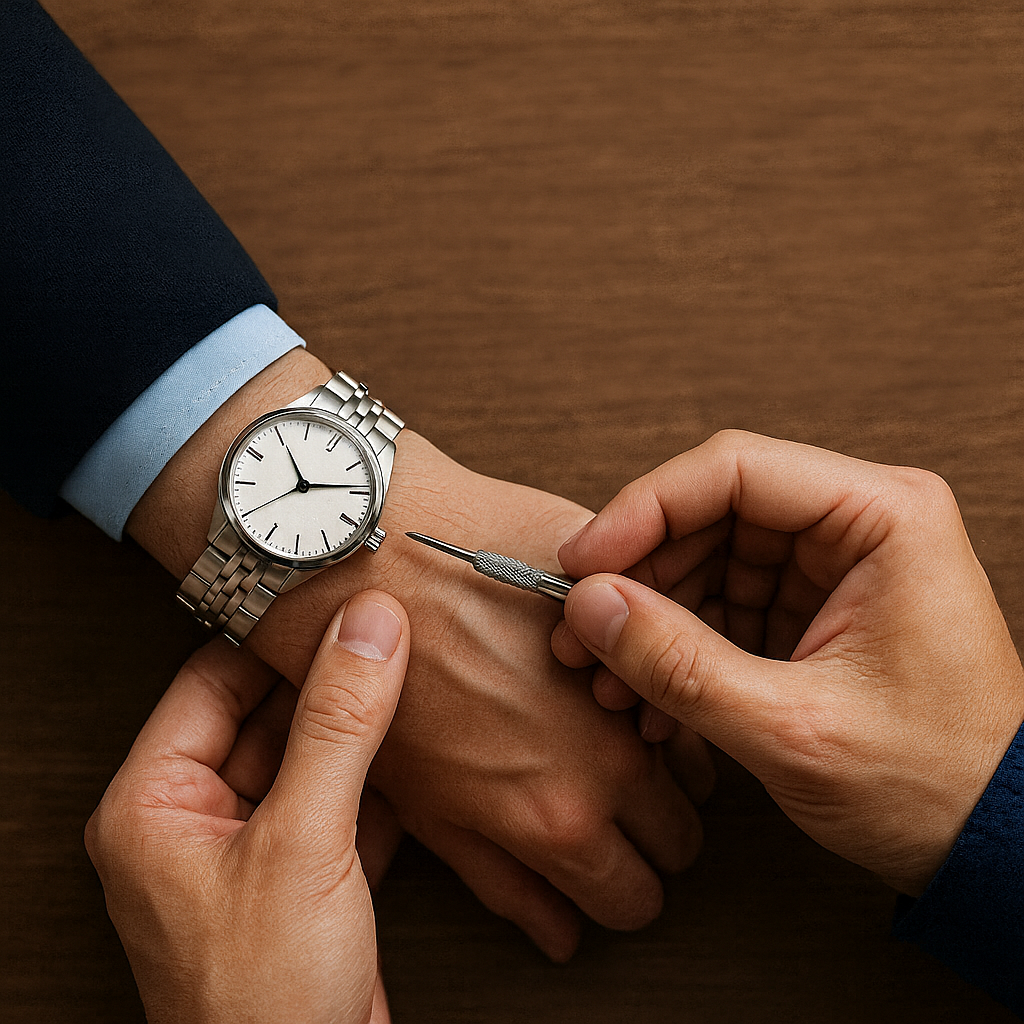 ベルト調整:その場でサイズ調整対応。料金は腕時計の種類によりますが、1,000円(税別)~で対応